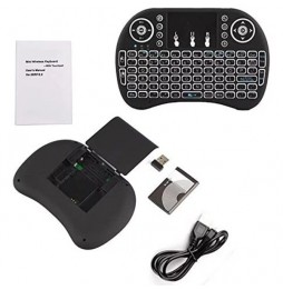 Mini teclado inalámbrico retroiluminado con panel táctil.