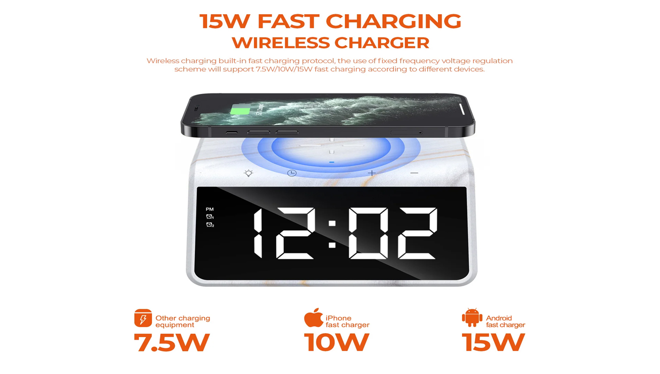 Modalidad: Cargador INALAMBRICO de Escritorio con Reloj Despertador